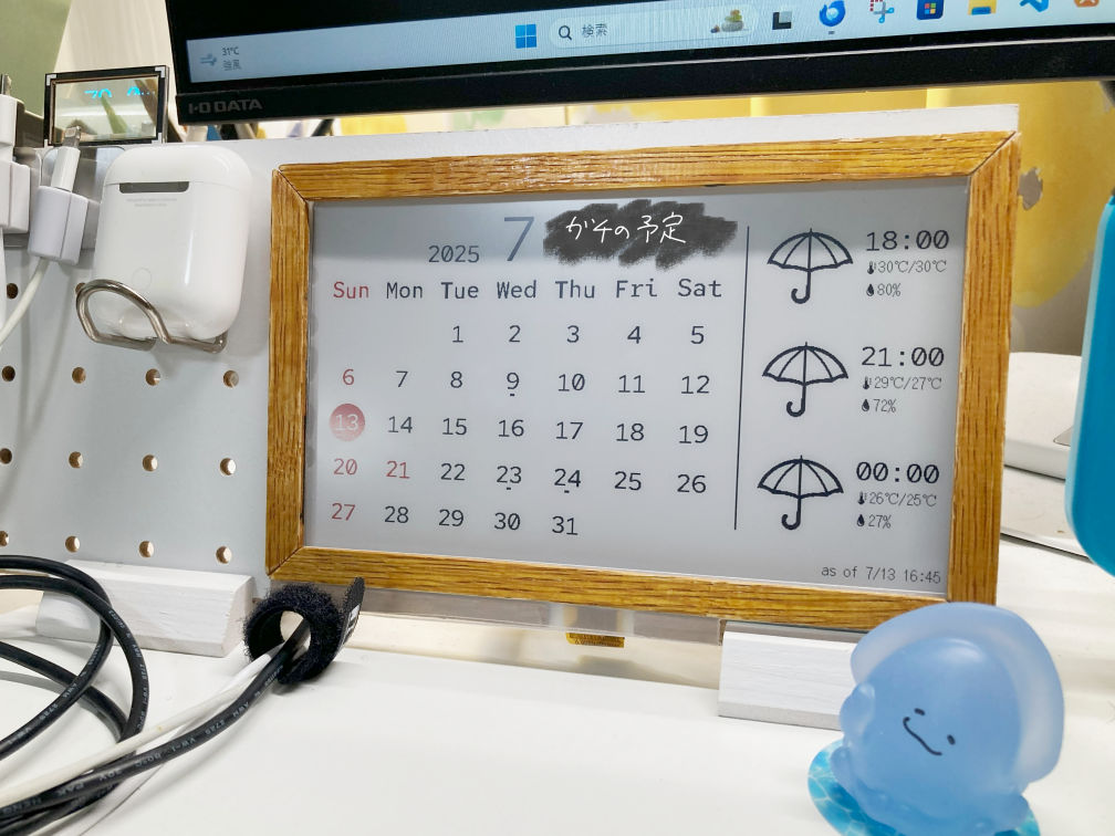 電子ペーパーと透明ディスプレイとRaspberry Pi Pico、それから家に転がっていた穴あき板と近所の工房でご自由にどうぞしてた木の切れ端で卓上カレンダー+ワットメーター作ったり(せっかくだから動画にまとめてみようかなと思ったけどめんどくさくなってやめてしもた)